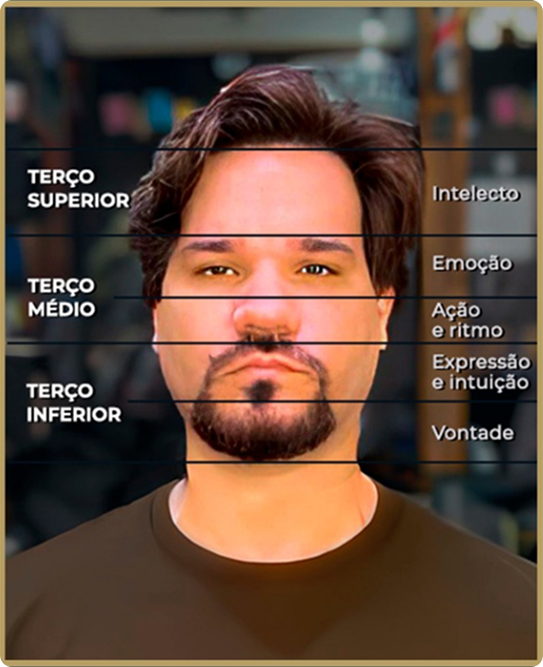 No visagismo, cada parte do seu rosto revela traços da sua personalidade e da forma como você se comunica. A análise dos terços faciais — superior, médio e inferior — ajuda a alinhar sua imagem com sua essência de forma estratégica e autêntica.